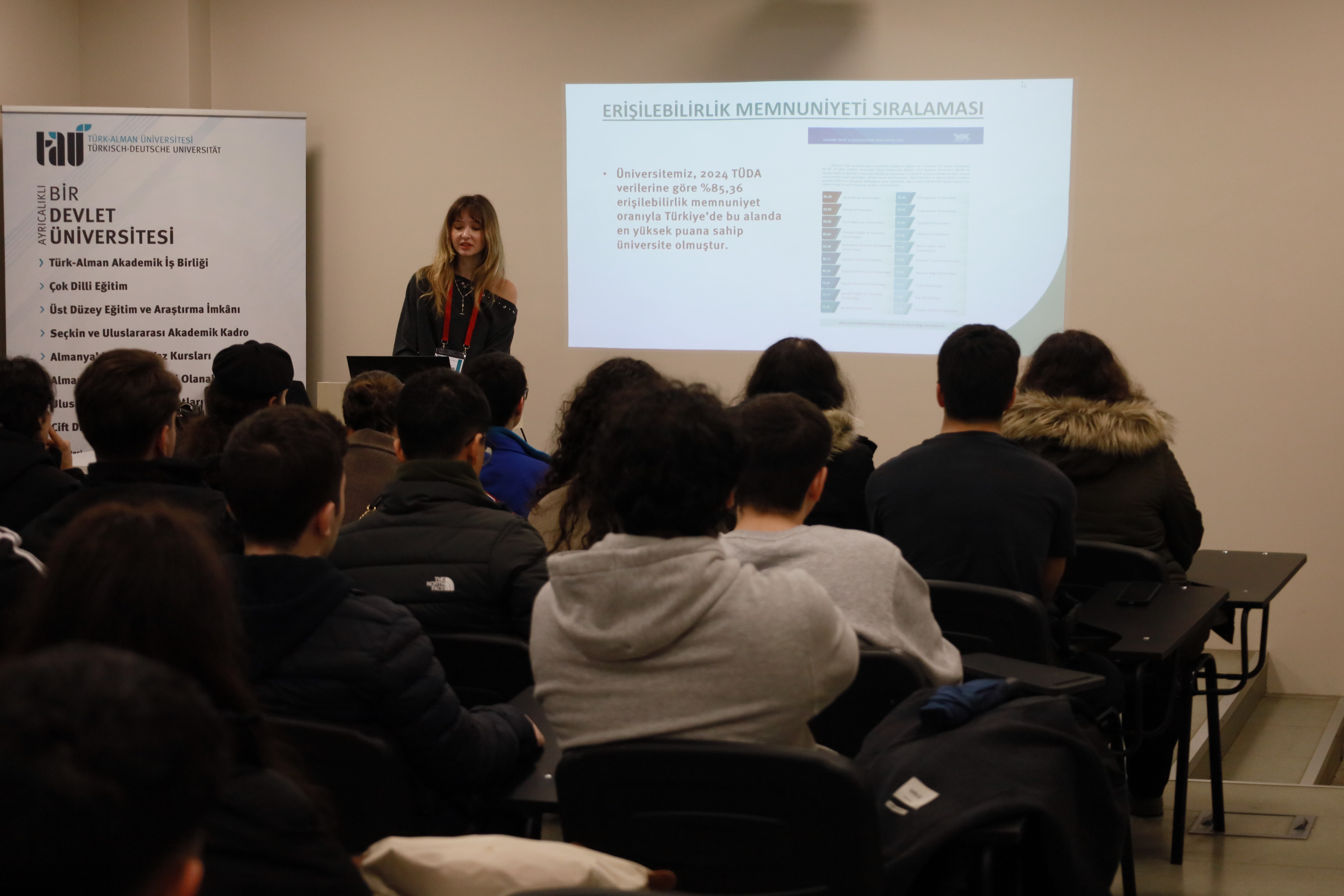 Tanıtım sunumu kapsamında eğitim anlayışımız, uygulama ağırlıklı ders içerikleri, uluslararası değişim programları ve öğrencilerimize sunulan sosyal ve kültürel olanaklar hakkında detaylı bilgilendirme yapıldı.