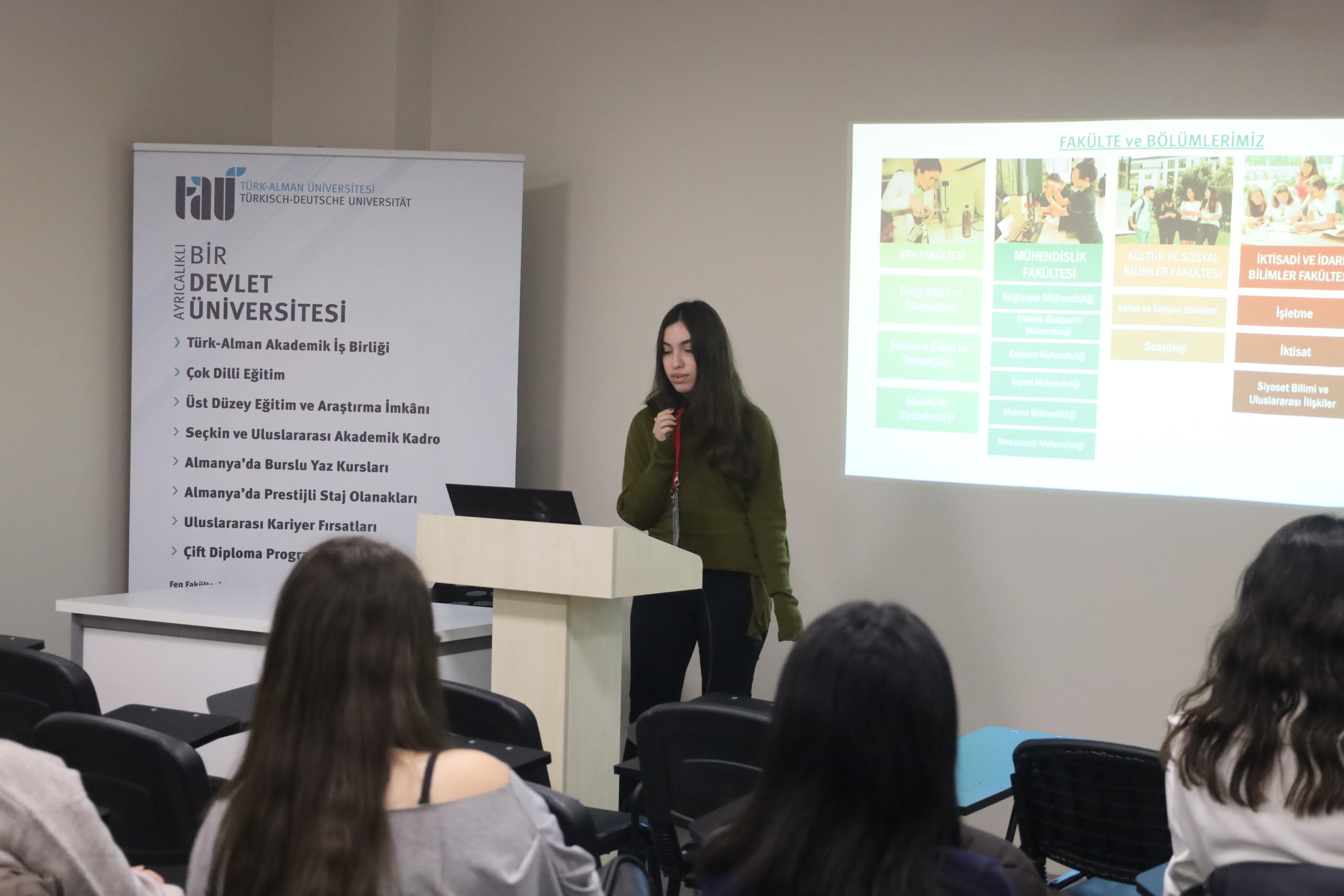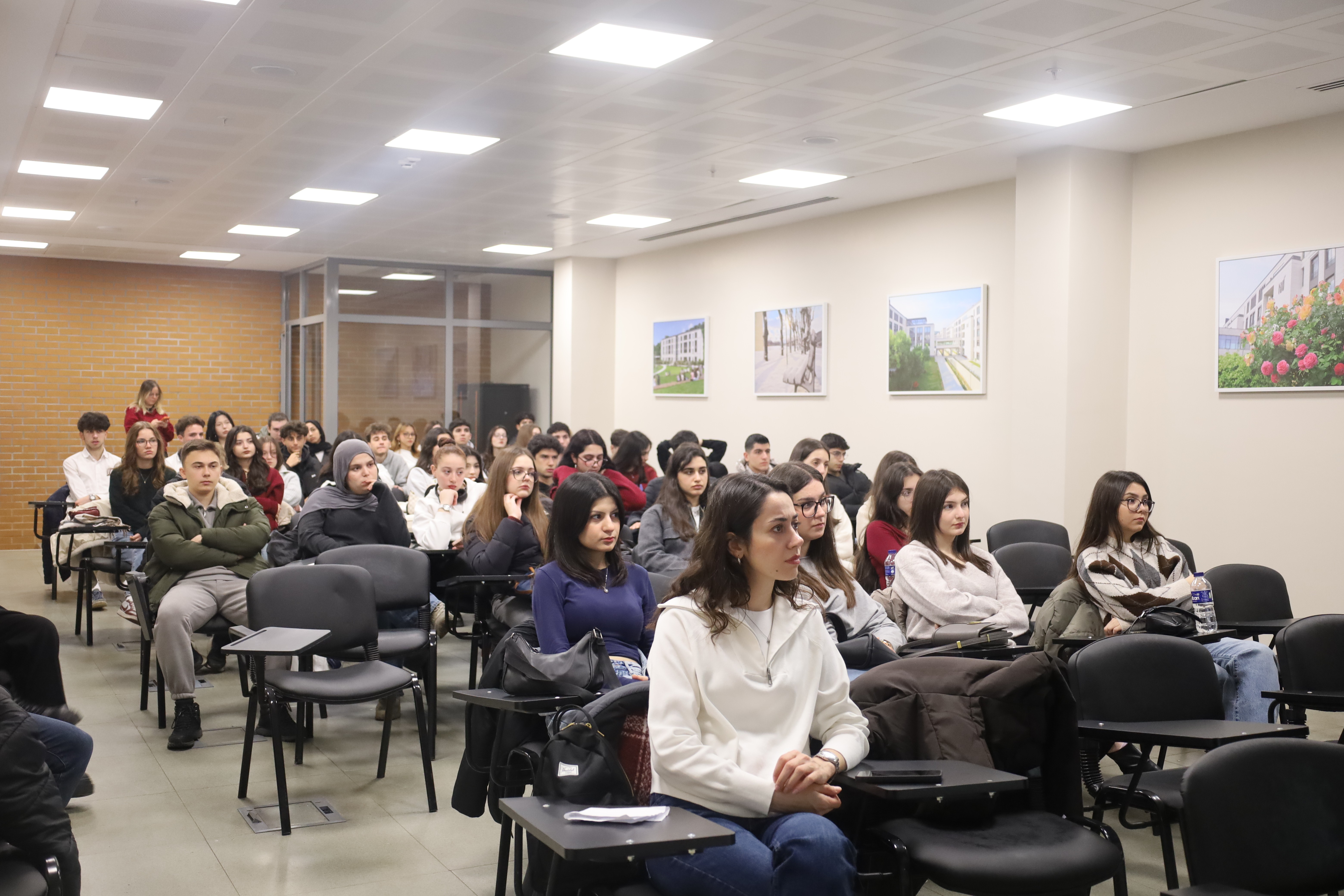 25 Aralık 2025 tarihinde Habibler Anadolu Lisesi öğrencilerini Üniversitemizde misafir ettik. Tanıtım programı, İletişim Koordinatörlüğü Tanıtım Salonu’nda gerçekleştirilen genel bilgilendirme sunumuyla başladı. Katılımcılarla Üniversitemizin akademik yapısı, eğitim anlayışı ve sunduğu sosyal imkanlar hakkında kapsamlı bilgiler paylaşıldı. Fakülteler, sosyal alanlar ve çeşitli kampüs olanaklarını keşfeden öğrenciler, üniversite atmosferini yakından tanıma imkânı elde etti. Ziyaret programı, öğrencilerden gelen soruların yanıtlandığı soru-cevap bölümü ve hatıra fotoğrafı çekimi ile sona erdi.