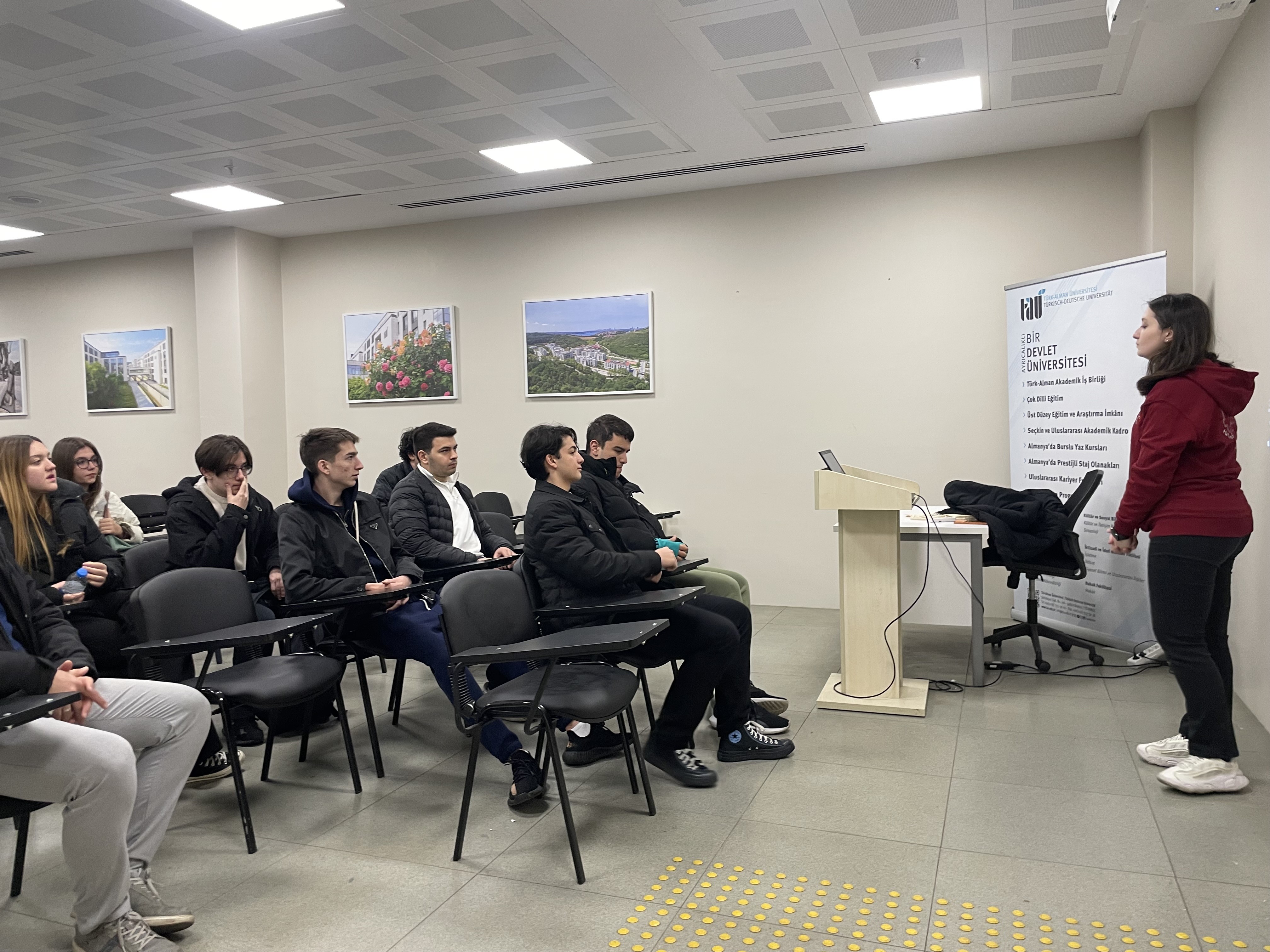 24 Mart 2026 tarihinde İstek Belde Anadolu ve Fen Lisesi 12. sınıf öğrencileri Üniversitemizi ziyaret etti. Ziyaret kapsamında etkinlik, İletişim Koordinatörlüğü Tanıtım Salonu’nda gerçekleştirildi. Burada öğrencilere Üniversitemizin akademik yapısı, bölümleri ve sunduğu sosyal ile kültürel olanaklar hakkında kapsamlı bilgiler aktarıldı. Sunumun ardından öğrenciler sorularını yönelterek Üniversite yaşamı hakkında daha ayrıntılı bilgi alma imkânı buldu. Programın devamında yapılan kampüs turu sırasında derslikler, sosyal alanlar ve ortak kullanım alanları tanıtıldı. Ziyaret, çekilen hatıra fotoğrafı ile son buldu.