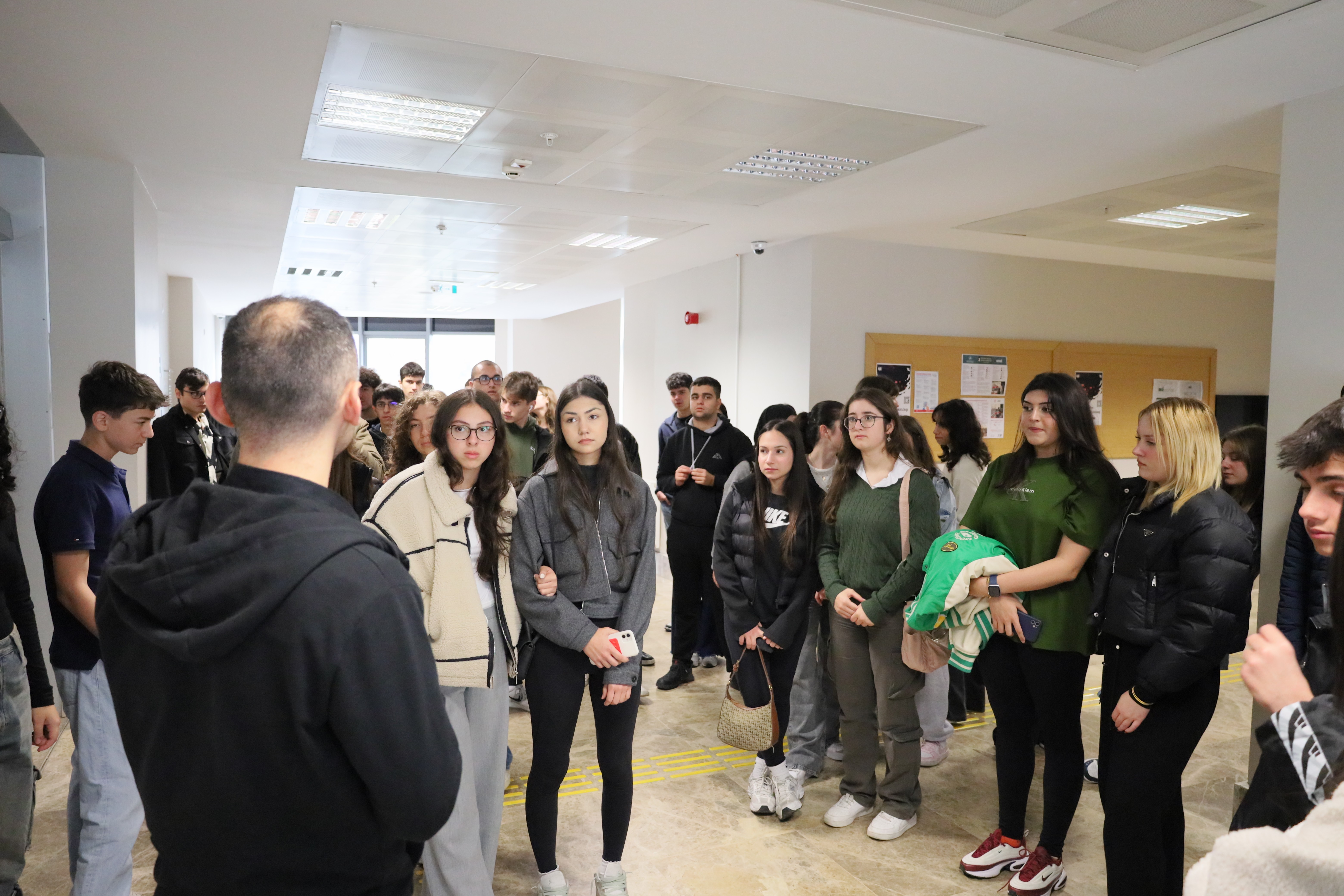 6 Kasım 2025 Perşembe günü, Kurtköy Nazmi Arıkan Fen Bilimleri Anadolu Lisesi öğrencileri Üniversitemize konuk oldu. İletişim Koordinatörlüğü Tanıtım Salonu’nda gerçekleştirilen program kapsamında, Üniversitemizin akademik yapısı, eğitim anlayışı ve sosyal olanakları hakkında kapsamlı bilgiler paylaşıldı. Soru-cevap bölümünde katılımcıların merak ettikleri konulara dair soruları yanıtlandı. Ziyaret, kampüs turu ve fotoğraf çekimiyle tamamlandı.