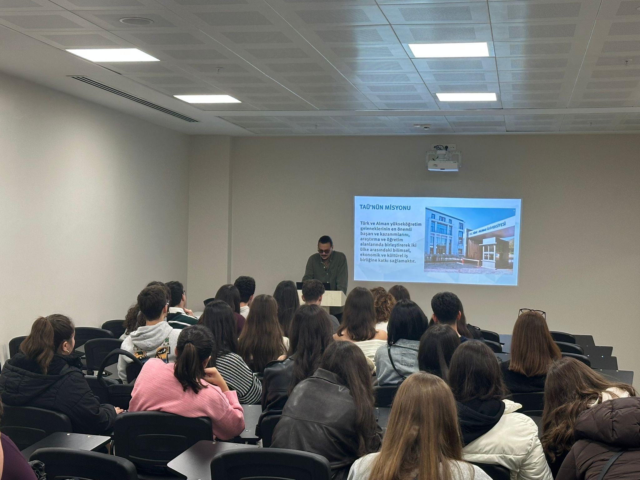 23 Ekim 2025 tarihinde, Manisa Sosyal Bilimler Lisesi öğrencileri Üniversitemizi ziyaret etti. Program, İletişim Koordinatörlüğü Tanıtım Salonu’nda yapılan sunumla başladı. Öğrencilere Üniversitemizin eğitim avantajları, akademik programları ve uluslararası bağlantıları hakkında bilgi verildi. Soru-cevap bölümünde öğrenciler merak ettikleri konularda görüş alışverişinde bulundu. Ziyaret, kampüs turu ve fotoğraf çekimiyle tamamlandı.