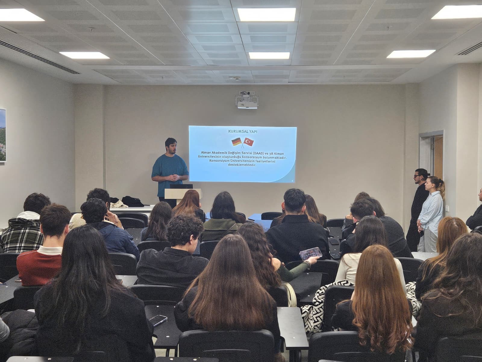 20 Kasım 2025 Perşembe günü, MBA Okulları öğrencileri Üniversitemize konuk oldu. İletişim Koordinatörlüğü Tanıtım Salonu’nda gerçekleştirilen program kapsamında, Üniversitemizin akademik yapısı, eğitim anlayışı ve sosyal olanakları hakkında kapsamlı bilgiler paylaşıldı. Soru-cevap bölümünde katılımcıların merak ettikleri konulara dair soruları yanıtlandı. Ziyaret, kampüs turu ve fotoğraf çekimiyle tamamlandı.