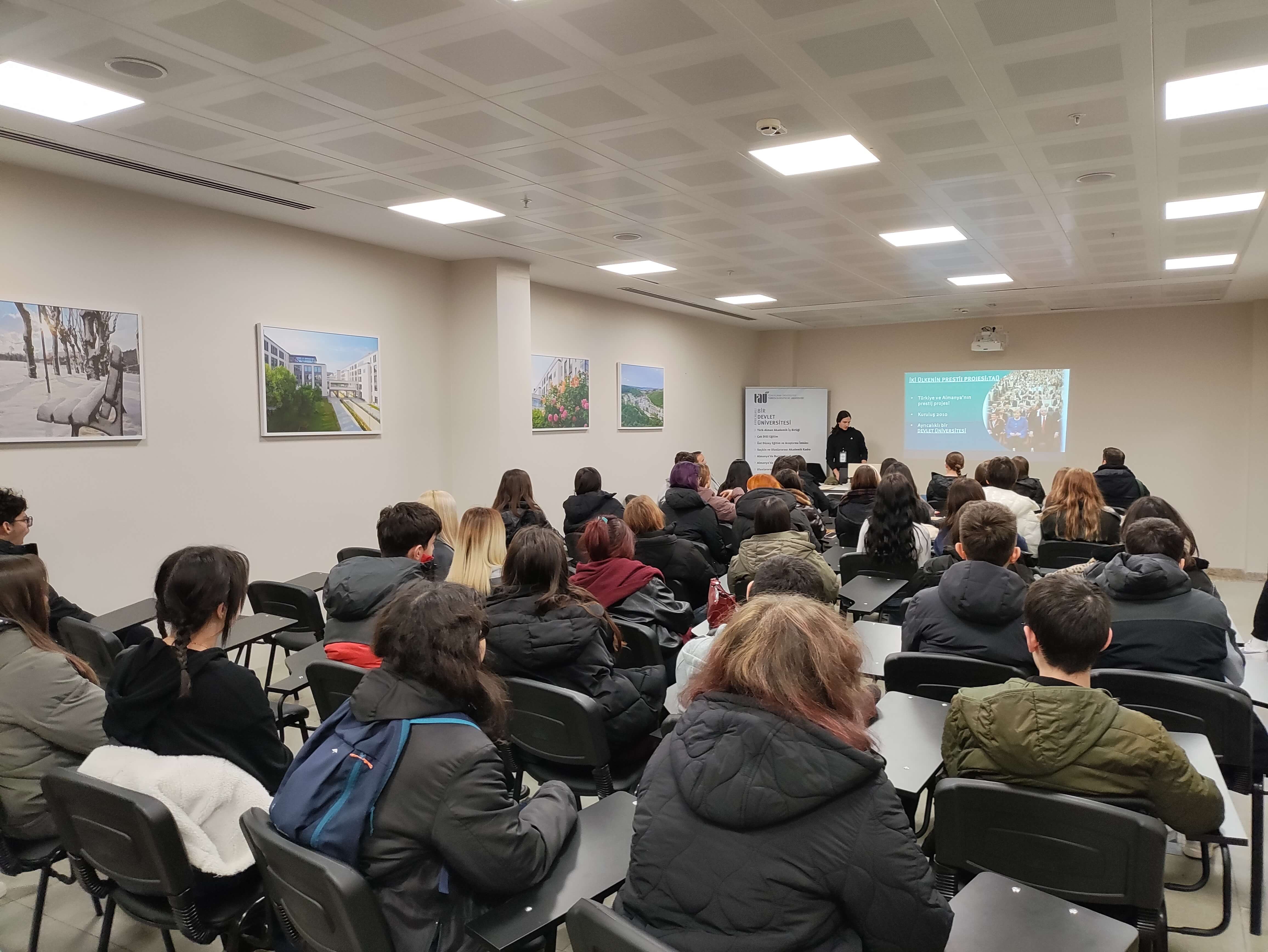Sunumun ardından öğrenciler, Üniversitemizin fakülteleri, bölümleri ve diğer akademik birimleri hakkında merak ettikleri soruları yöneltme fırsatı buldu. Ziyaret programı kampüs turu ile devam etti. Öğrenciler kampüsün çeşitli alanlarını yakından tanıma imkânı elde etti ve etkinlik, günün anısına çekilen toplu fotoğraf ile sona erdi.