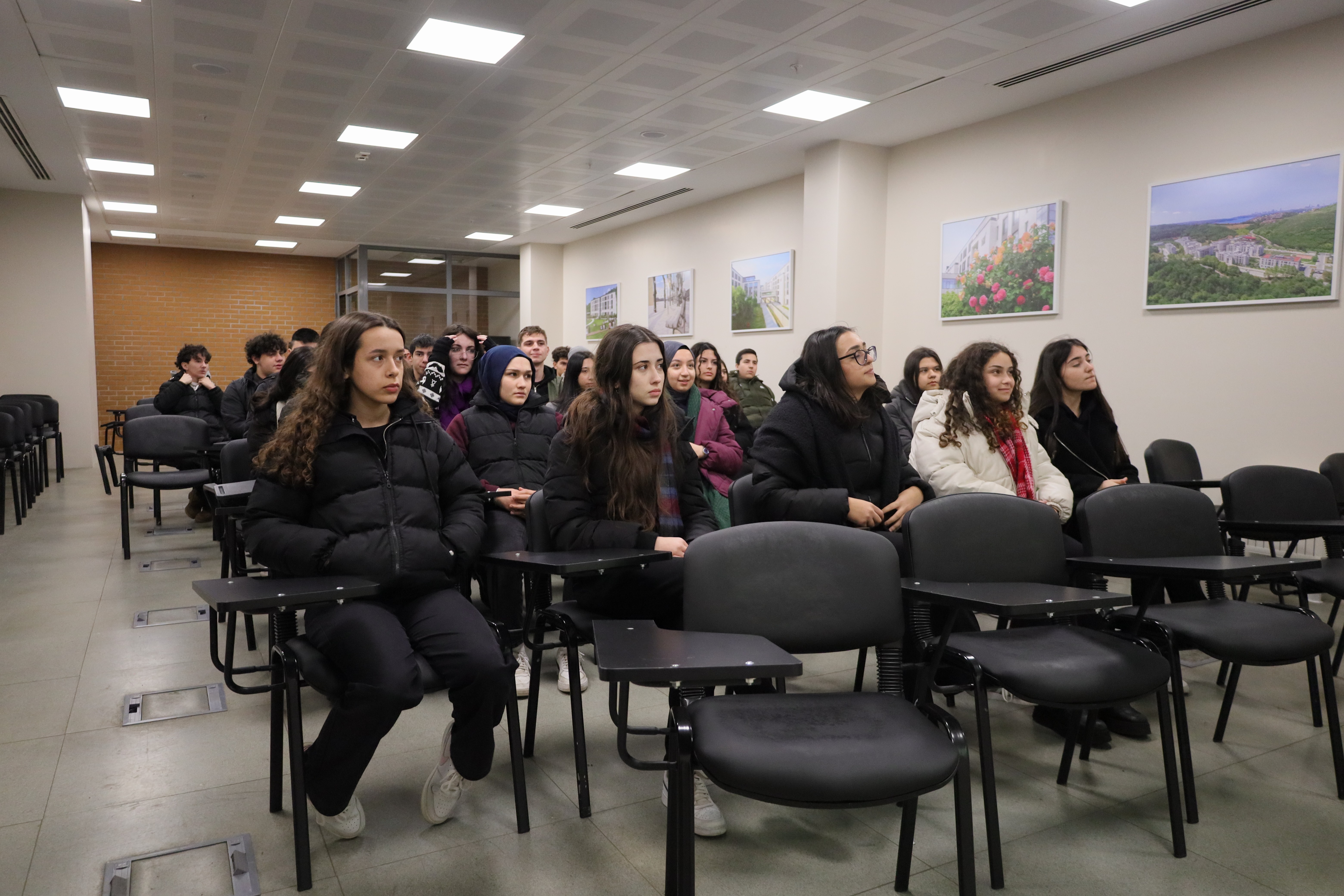 On December 30, 2025, students from Turgutlu Anatolian High School visited our university. The program, held in the Presentation Hall of the Coordination Office of Communications offered participants comprehensive information about the university’s academic structure, educational model, and the social and cultural opportunities available on campus. At the end of the prasentation, students had the opportunity to ask questions and receive detailed answers. The visit concluded with a campus tour, during which participants explored key facilities and social areas, and ended with a group photo to commemorate the day